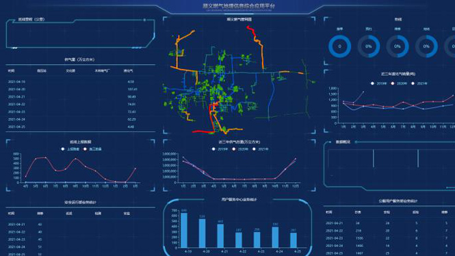 先进驾驶舱设计理念充分利用 GIS、云计算、大数据、互联网传输等技术建成智慧燃气大数据服务中心,打造“1+3+N”智慧燃气新模式。智慧燃气综合平台,实现数据共享,降本增效运营可视化管理,为管理层分析与决策提供更精准的数据支撑司时降低公司运营安全风险。