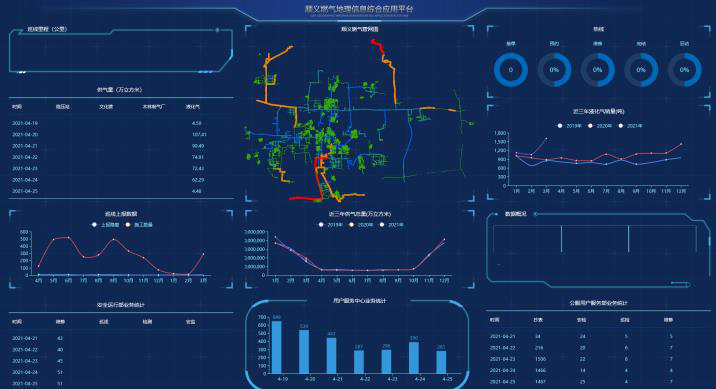 先进驾驶舱设计理念充分利用GIS、云计算、大数据、互联网传输等技术建成智慧燃气大数据服务中心,打造“1+3+N”智慧燃气新模式。智慧燃气综合平台,实现数据共享,降本增效,运营可视化管理,为管理层分析与决策提供更精准的数据支撑同时降低公司运营安全风险。